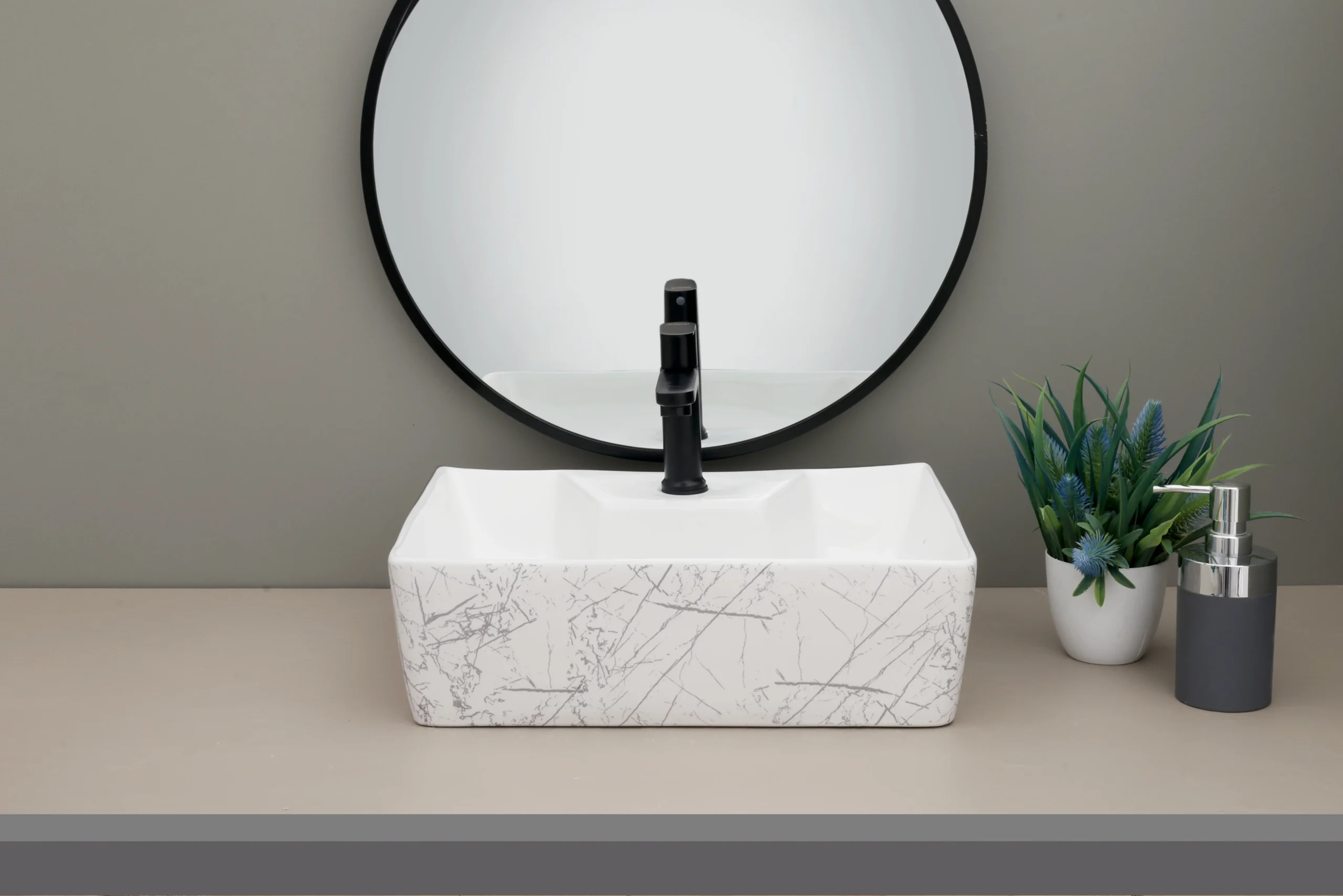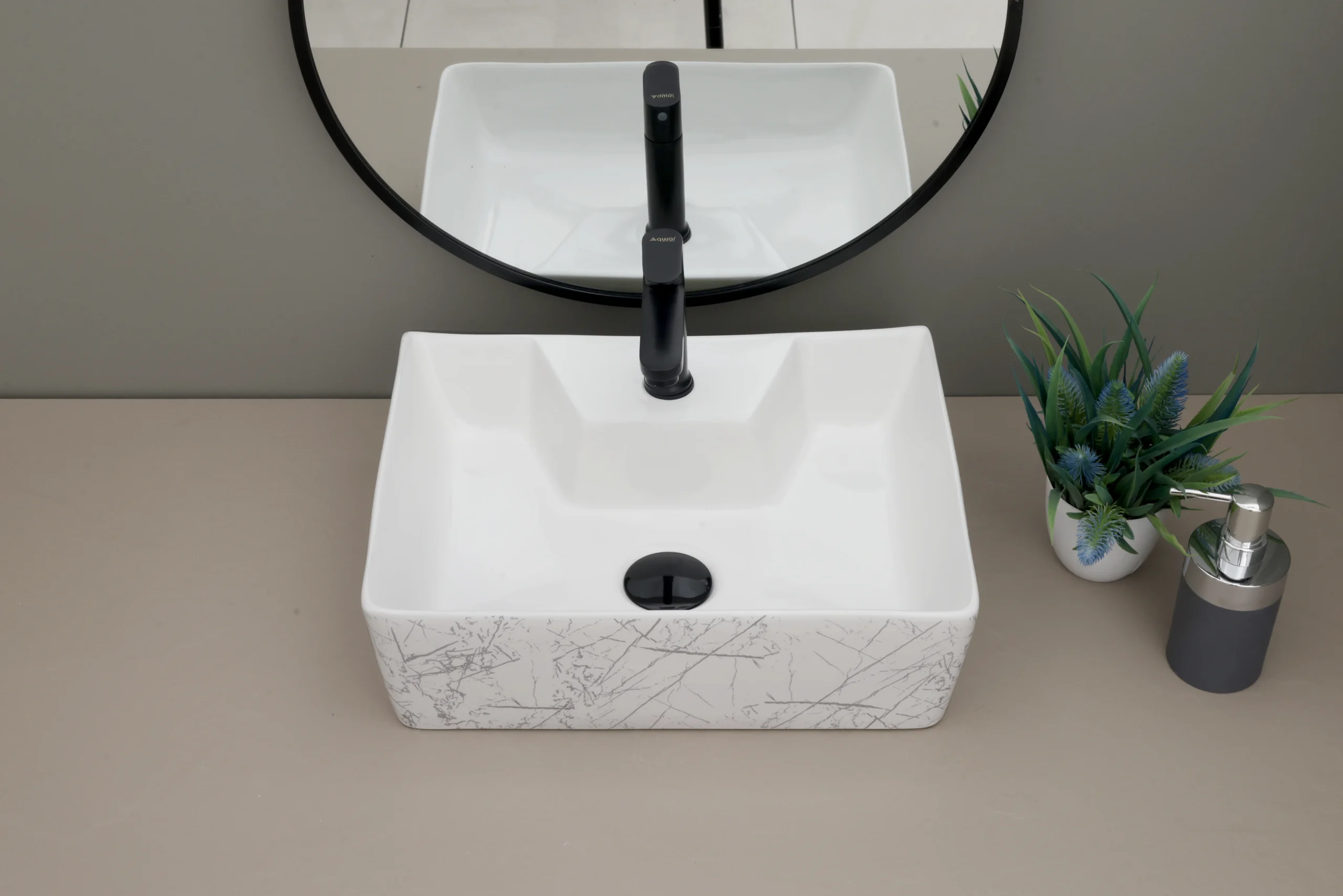 Elevate your bathroom aesthetic with these stunning rectangular vessel sinks.