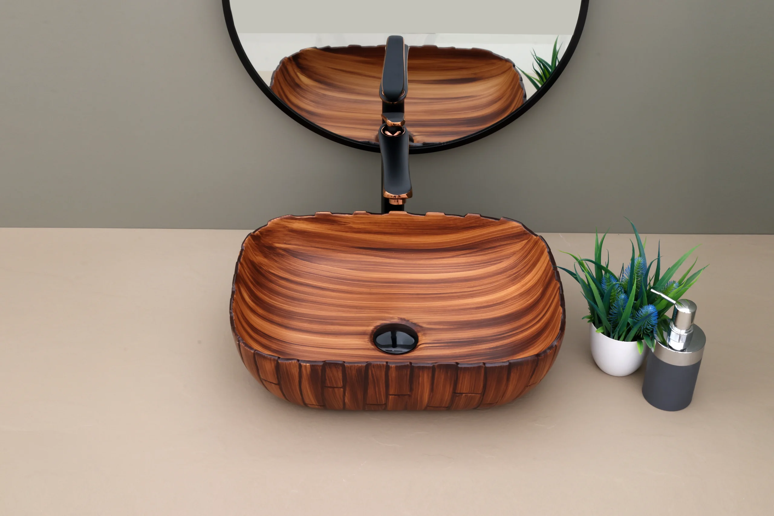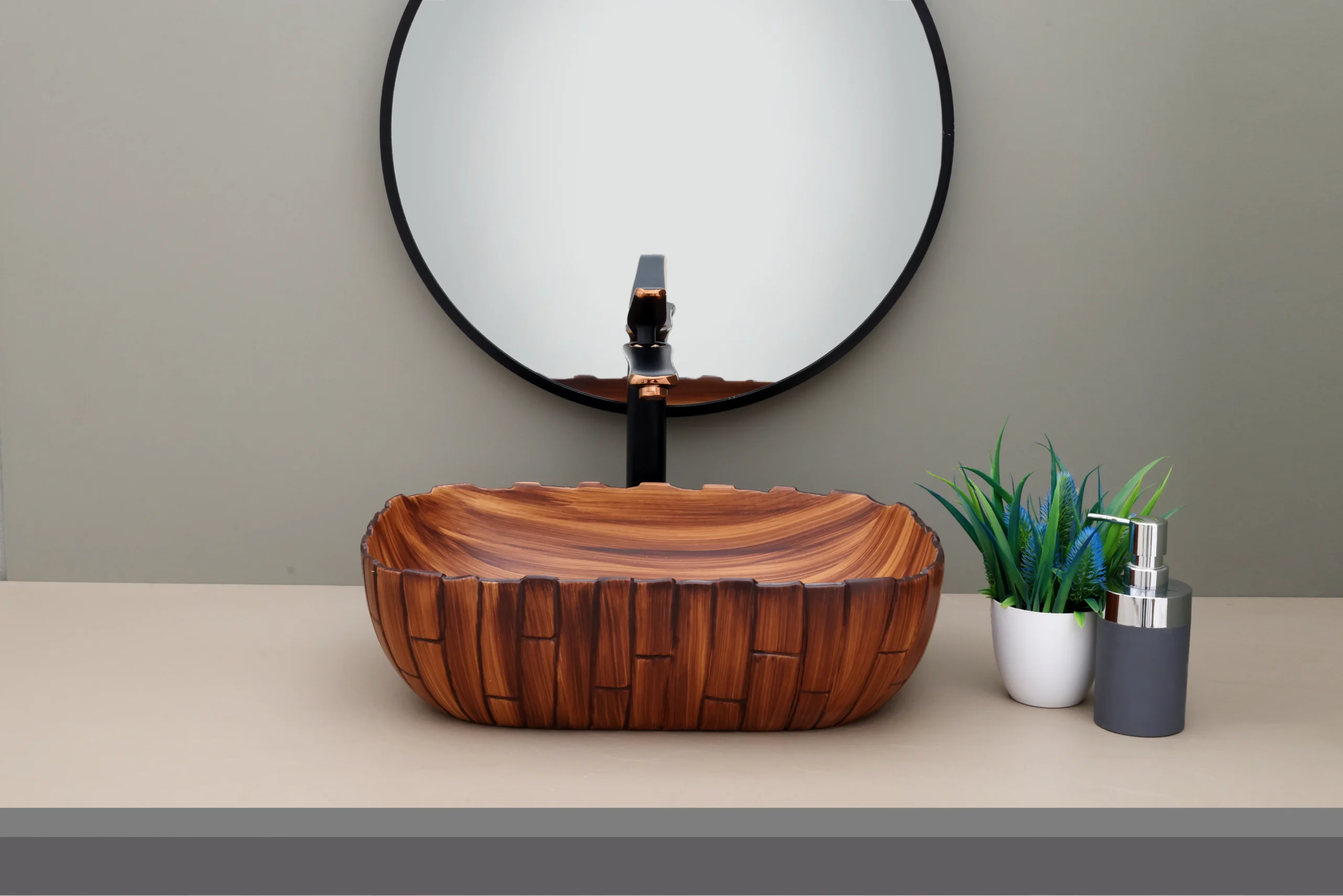 The exterior features a vertical “carved” texture that provides a beautiful tactile and visual contrast to the smooth interior.